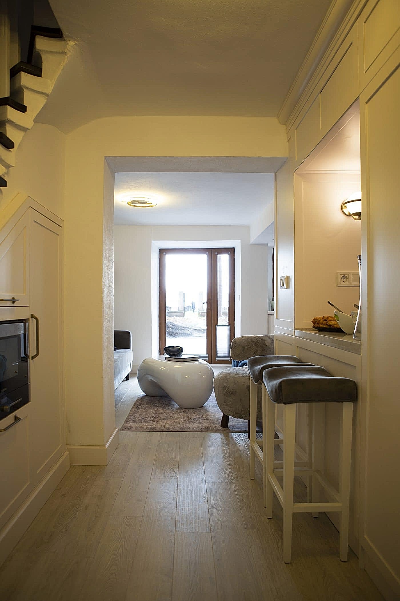 Daha önce farklı bir işlev için kullanılan mekanın Öykü Hanım’ın mekana yüklediği kimlik ile tasarımına başlandı. Minimal ve modern tasarım yaklaşımlarında mutabık kalındıktan sonra hızlıca tedarik, üretim ve uygulama süreçlerine girildi. İnşai işleri minimum tutma hedefi ile küçük bir mekanın en verimli kullanılabileceği fonksiyonel bir mutfak tasarlandı.